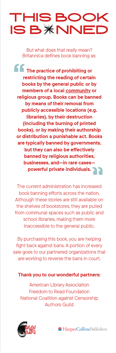 Each back cover will feature the reasons why the book was banned as well as a quote from the author about censorship or freedom of speech.